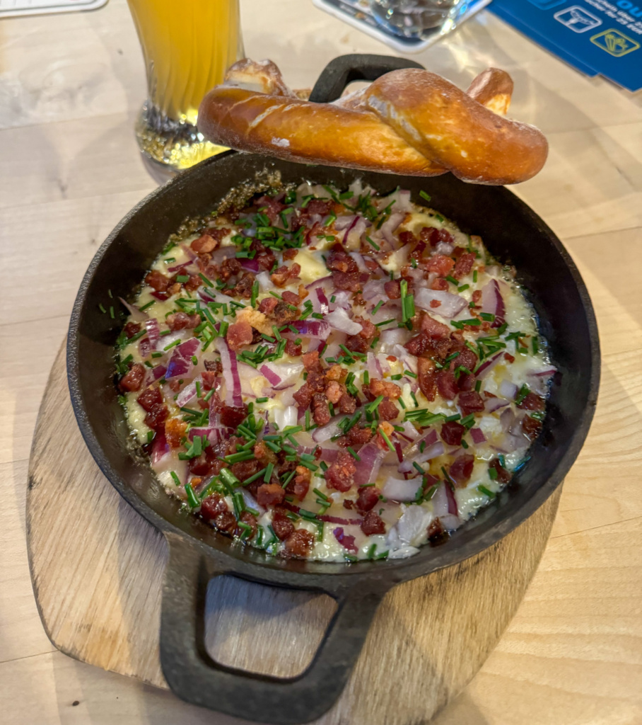 Este local, es otro de los imprescindibles para comer bien en Nuremberg y disfrutar de su decoración de taberna tradicional. Dentro del restaurante, existe un gran fuego en el que podrás ver cómo asan tu carne. Nosotros pedimos una fondue con bacon y cebolla, mojada con un pretzel, una salchicha con ensalada de patata y el clásico strudel de manzana con nata.